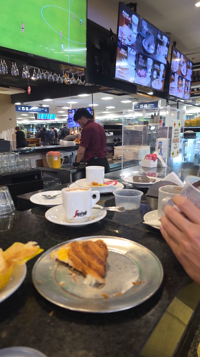 The atmosphere hums with a steady energy—airports are never truly quiet, and here the buzz of announcements and rolling suitcases blends with the casual clatter of plates and soft conversation. Despite this constant motion, there’s a comforting rhythm to the experience: servers moving attentively between tables, familiar Aussie-inspired aromas mingling with the South American air, and a sense that this is a place meant not just to refuel the body but also to gather brief moments of ease before a flight.