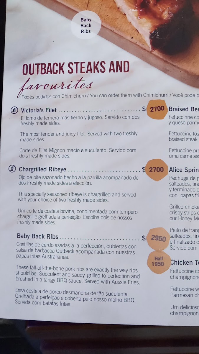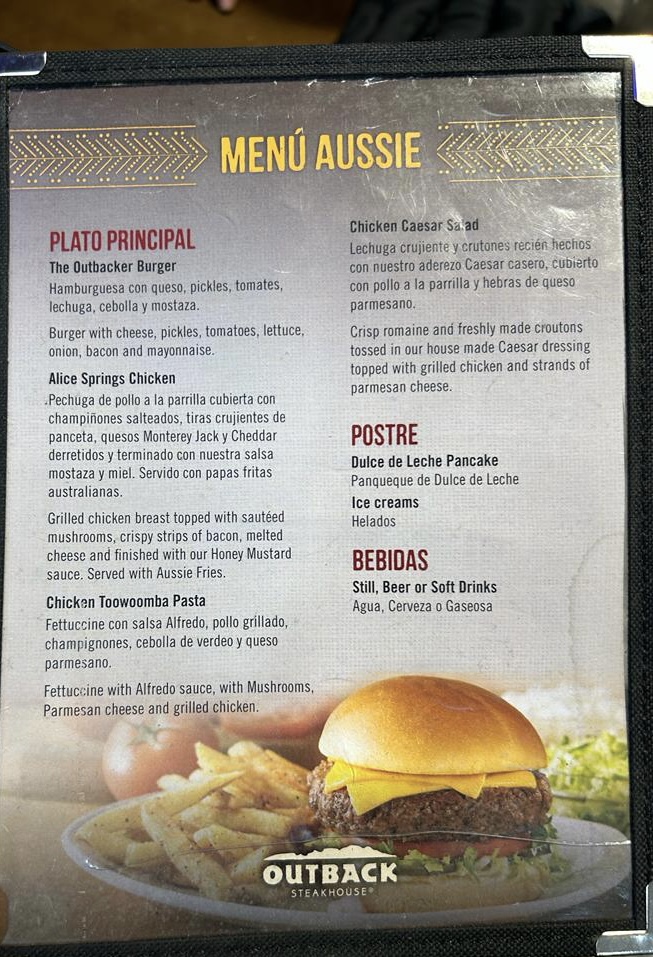 Outback Steakhouse Aeroparque Menu